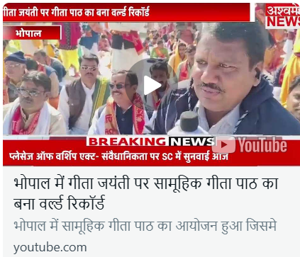 Youtube channelA world record was set for mass recitation of Gita on Gita Jayanti in Bhopal by adminDecember 13, 20240246 Share0